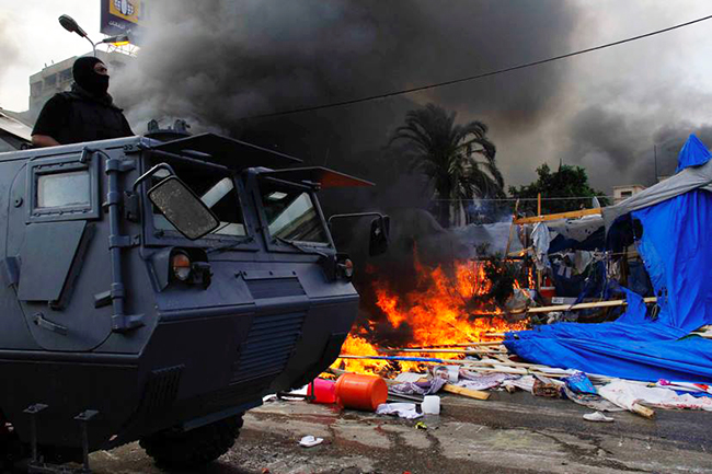 У Каиру режим покушава да сломи отпор Морсијеваца на тргу испред џамије Рабија ал-Адавија. Наводно је трг пред Каирским универзитетом успео да очисти пре Мануровог декрета.