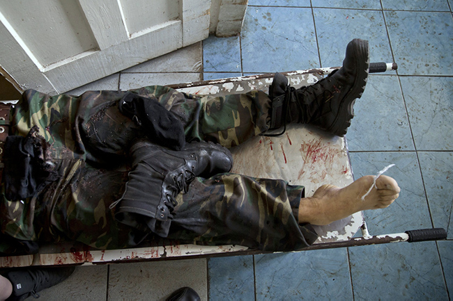 У објективу - десетак лоше затворених сандука из којих вире ноге у војничким чизмама, а поред њих још шест црних пластичних врећа са телима.
