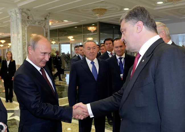 За време данашњих преговора, у којима су учествовали и председици Белорусије и Казахстана Александар Лукашенко и Нурсултан Назарбајев, као и комесарка ЕУ за спољну политику и безбедност Кетрин Ештон, Порошенко је нагласио да је допутовао у Минск да би зауставио крвопролиће на истоку земље и обезбедио почетак тражења политичком компромиса. Притом је, прилично неодређено, обећао да ће „интереси Донбаса бити узети у обзир”.