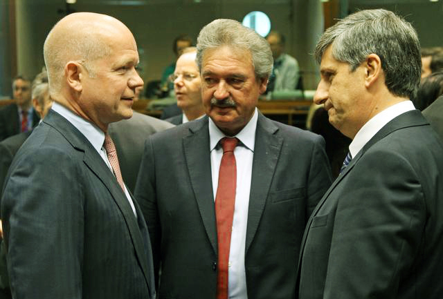После 12 сати тешких преговора у Бриселу, британски шеф дипломатије Вилијам Хејг је објавио да је постигнут договор о укидању емабрга на оружје побуњеницима, али не и режиму сиријског председника Башара Асада, преноси АФП.