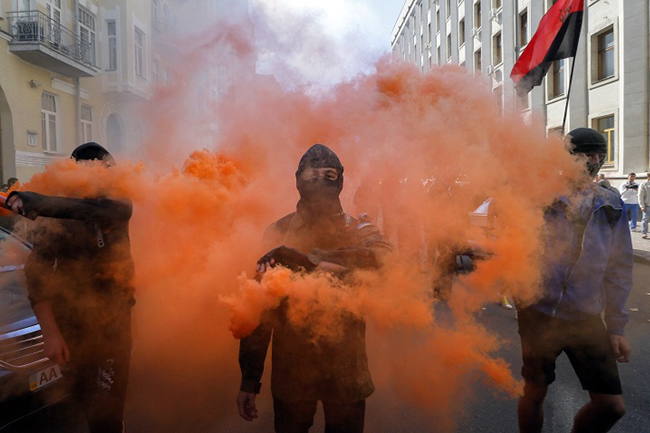 „Секторовци“ бацали петарде и димне бомбе испред радне резиденције Петра Порошенка