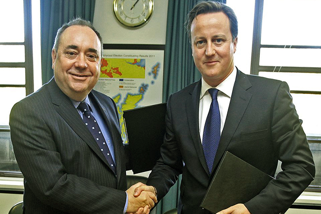 Салмондова Национална партија Шкотске, која је 2011. освојила апсолутну већину у регионалчном парламенту, као главно предизбнорно обећање имала је управо „референдум независности“.