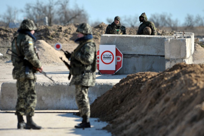 Украјински граничари код села Стрелковое на граници са Кримом