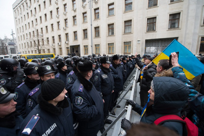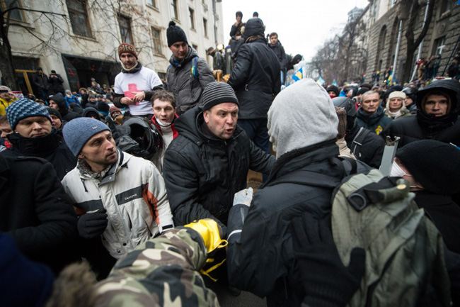 Демонстранти – њих око 200 - покушали су, користећи и ровокопач, булдожер и неки непознати гас, да заузму здање администрације шефа државе, а у својим рукама већ држе Градску кућу Кијева и тамошњи Дом синдиката.