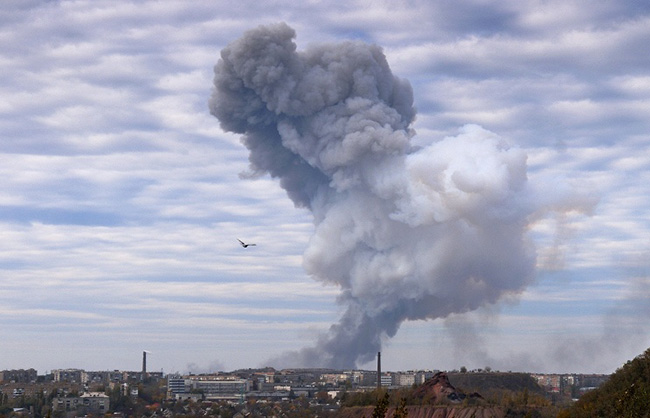 Кијевска хунта је двематактичком балистичком ракетама Точка-У гађала и погодила Доњецку државну фабрику експлозива. Једна је погодила складиште са експлозивом.
