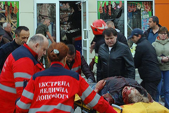Једна жена је погинула када је погођен супермаркет „Амстор“, очевици тврде да има велики број људи са ранама од гелера.