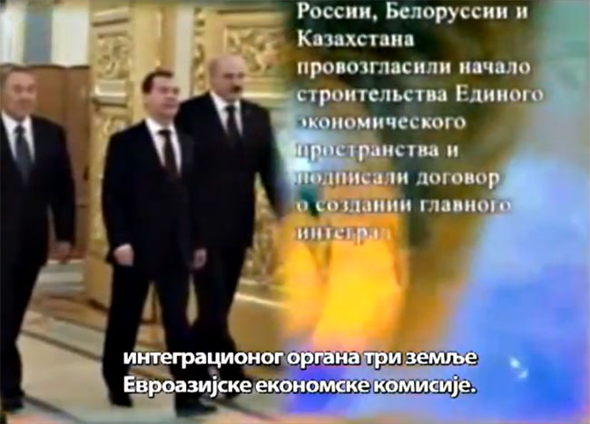 „У Кремљу су председници Русије, Белорусије и Казахстана обнародовали почетак стварања Јединственог економског простора и потписали споразум о формирању главног интеграционог органа три земље – Евроазијске економске комисије”.
