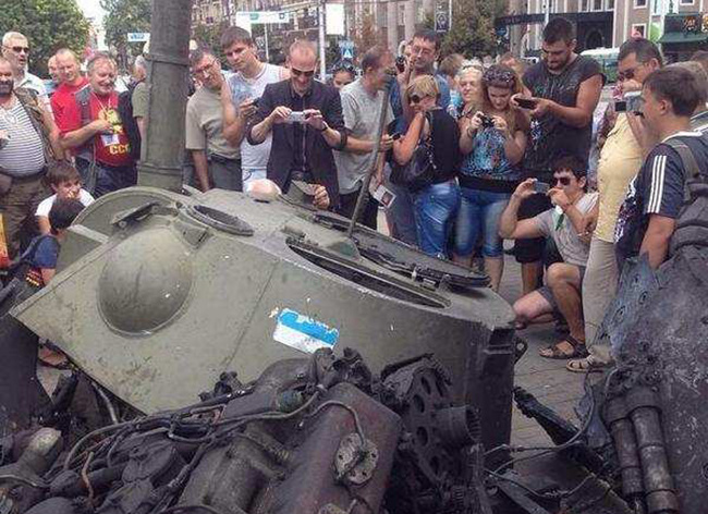 Како је и обећао премијер Доњецке Републике, Александар Захарченко, у центру Доњецку је била „изложена” и мање или више оштећена украјинска ратна техника. Тенкови, транспортери, топови...