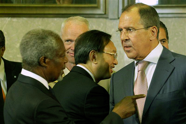 „Одлазак Асада се усвојеним документом ни на који начин не тражи, чак и не подразумева. У првој верзији „акта“ постојала је, додуше, фраза да из даљег процеса морају да буду искључени „људи који су сметња миру“. Али, и она је уклоњена на на наше тражење“ - изјавио је Лавров.