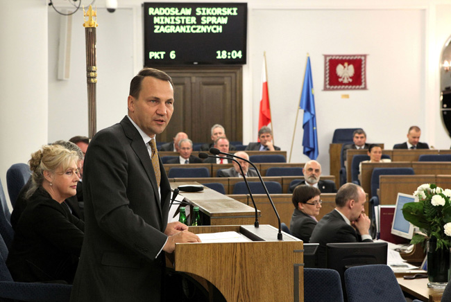 У једном од тих фрагмената, Сикорски тврди да је спољна политика премијера Доналда Туска и министра националне одбране Томаша Семољака „погрешна”, а да пољско-амерички савез „не вреди ништа”. Још је нагласио да је тај савез „штетан јер (код Пољака) ствара лажни осећај безбедности”.