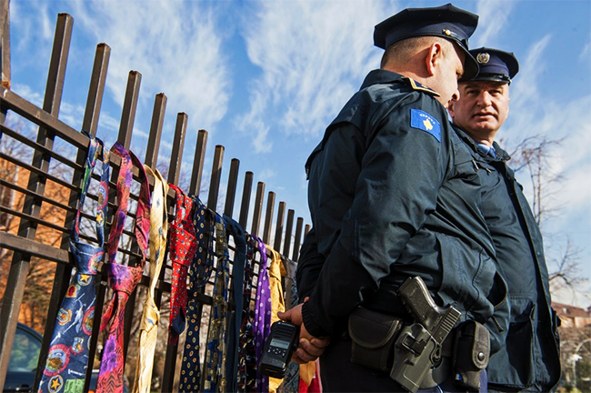 После неколико сати кравате и кошуље су уклоњене с ограде Владе Косова.