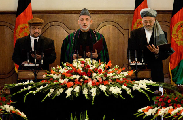 Мохамед Касим Фахим, Хамид Карзаи и Карим Халили полажу заклетву