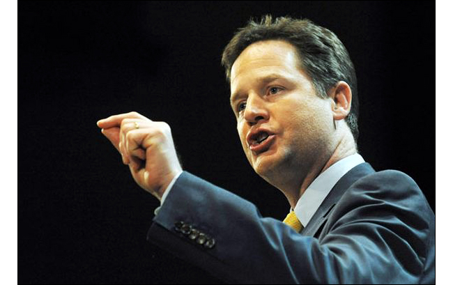 У интервјуу листу The Guardian, Клег се заложио да се богатима привремено повећа порез да би се избегло раслојавање у друштву и помогло економији која пати од дуготрајне рецесије: „Ако већ молимо људе да се жртвују још више током дугог периода, ако сва земља стеже каиш, онда треба да убедимо људе да то чине максимално поштено уз примену прогресивног опорезивања“.