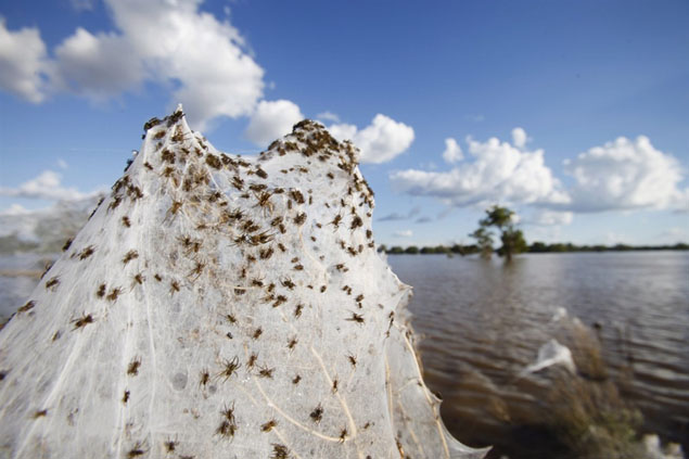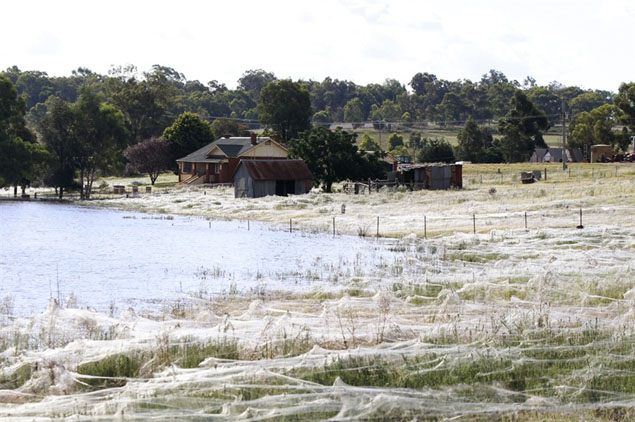 Једно од евакуисаних места је и Вага Вага, у Новом Јужном Велсу. У његовој близини су пауци – који су се такође спасавали од водене стихије - на једној фарми исплели читав покривач.