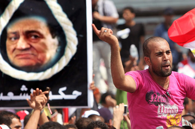 Тужилац Мустафа Сулејман изјавио је да је Мубарак, који је владао Египтом 30 година, недвосмислено одобрио употребу бојеве муниције и наредио пуцњаву на мирољубиве демонстранте.