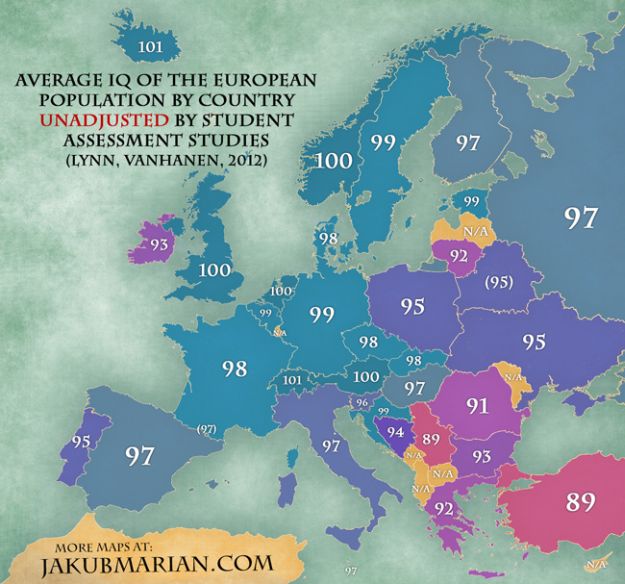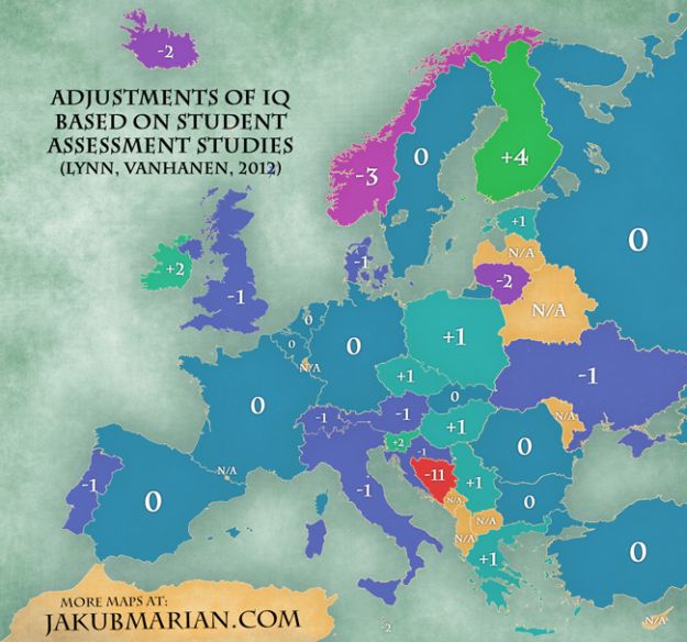 Нове карте Мариан је направио према студији Рицхарда Лyнна и Татуа Ванханена из 2012. године, названој „Интелигенција: Обједињавајући фактор друштвених наука”.