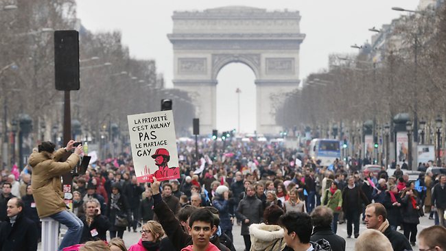 Озакоњивање истополних бракова било је једно од главних предизборних обећања актуелног председника Француске Франсоа Оланда. И, упркос масовним протестима – француски парламент је изгласао закон који таквим „породицама” даје право и да усвајају децу.