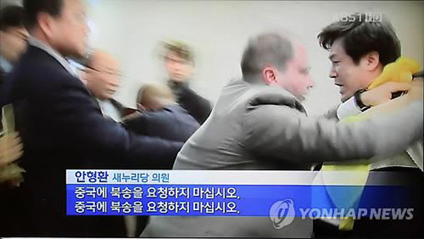 Наводно је неколико делегата Јужне Кореје покушавало да дохватити једног севернокорејског политичара при изласку са састанка док су извикивали пароле против кинеске политике враћања севернокорејских избеглица.