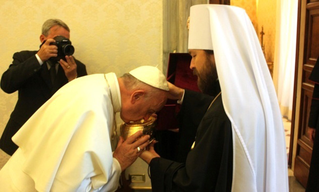 ПРЕДСЕДНИК Одељења за спољне црквене везе Московске Патријаршије Митрополит волоколамски г. Иларион сусрео се 15. септембра 2016. године у Апостолском дворцу у Ватикану са римском папом Франциском.