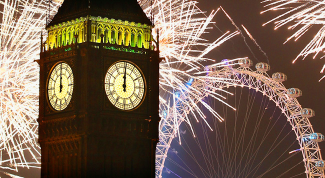 Око 80.000 људи на уличној забави у Единбургу је поздравило 2012. годину, а у Лондону се око 250.000 људи окупило да слуша звона Биг Бена у поноћ и посматра ватромет на Темзи.