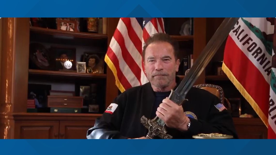 Бивши гувернер Калифорније све је ово рекао у видео снимку седећи за столом, чак узимајући у руке мач из филма „Конан Варвар“.