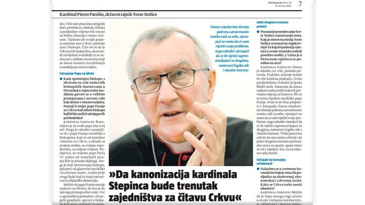 Паролин, који је „десна рука“ папe Франциска, ово је изјавио у интервјуу за католички недељник „Глас Концила“ који је дао током недавне дводневне посете Хрватској.