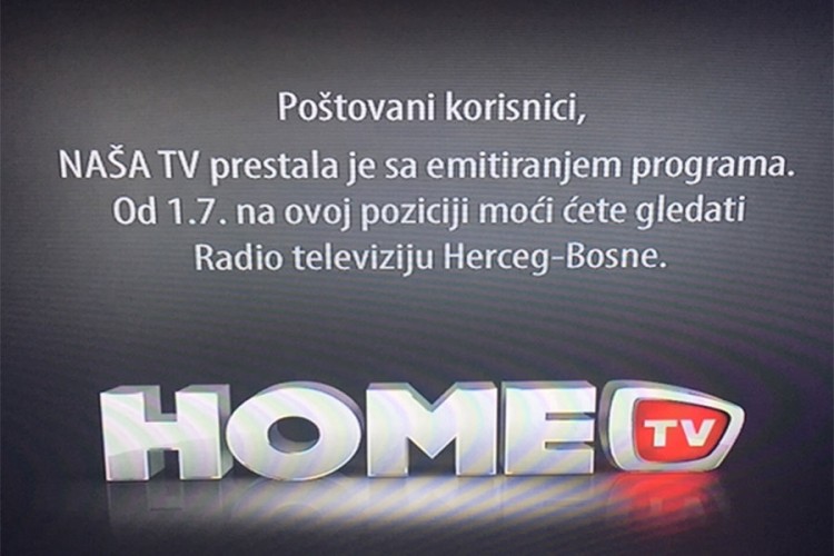 На Нашој ТВ стоји порука да та телевизија престала да емитује програм, те да ће гледаоци од понедељка, 1. јула, ту моћи да прате РТВ Херцег-Босну.