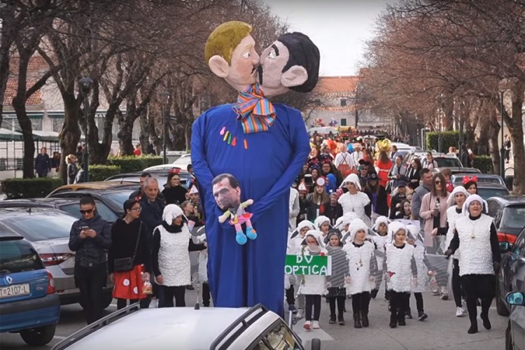 ТОКОМ традиционалне карневалске поворке у хрватском граду Имотском, у којој грађани маскирани шетају градом, спаљене су лутке истополоног пара с дететом.