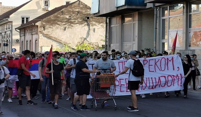 Пре тога су око 19.30 блокирали раскрсницу Темеринске и Партизанске улице и скандирали пароле: "Револуција" и "Ко не скаче тај је пандур".