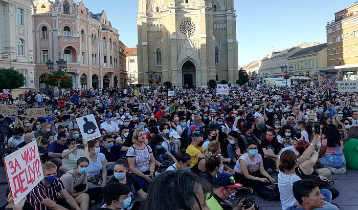 Протест је вечерас одржан и у центру Зрењанина, а окупило се неколико стотина грађана.