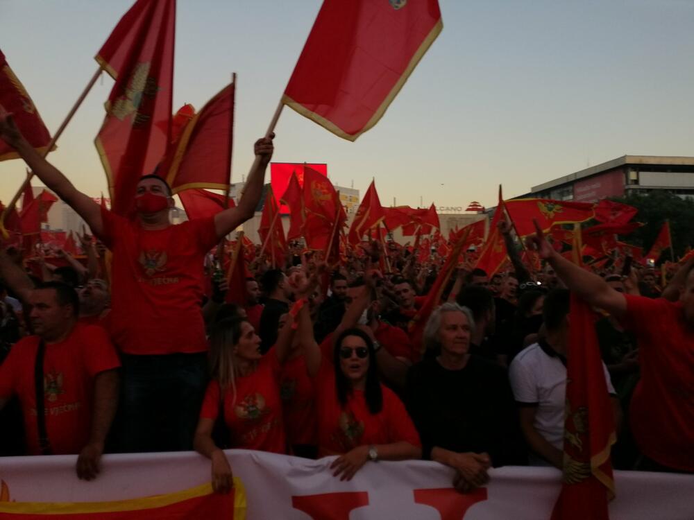 На Тргу независности у Подгорици окупило их се више од 20.000 на свом „патриотском скупу“ који је почео у 19 сати.