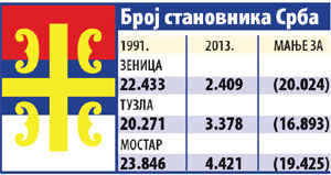 * Ни у МУП Кантона Сарајево на 19 руководећих позиција нема ниједног припадника српске националности. Такође, ни у МУП-у Босанскоподрињског кантона међу 33 руководећа службеника нема ниједног Србина, као ни у МУП-у Средњобосанског кантона, где су 23 руководиоца. У МУП-у Зеничко-добојског кантона, рецимо, од 58 руководећих службеника само су два Србина, а у МУП-у УСК од 42 руководећа један је Србин