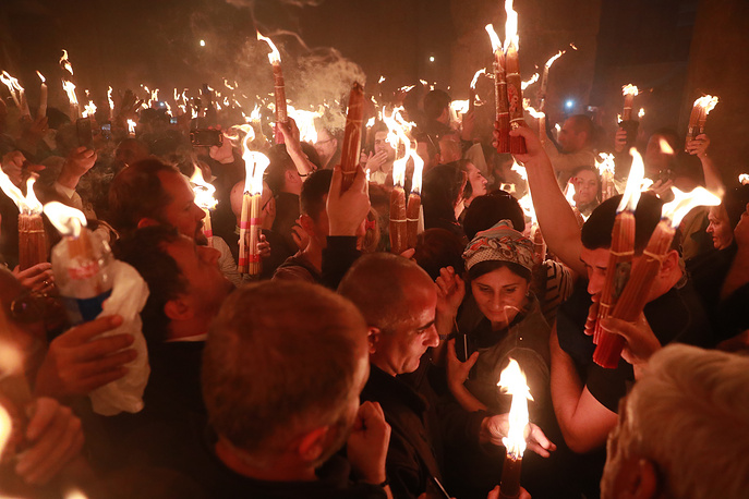 Опет се то догодило у Кувуклији - мраморној капелици над пећином Гроба Господње, где је, по предању, био погребен Исус Христос.