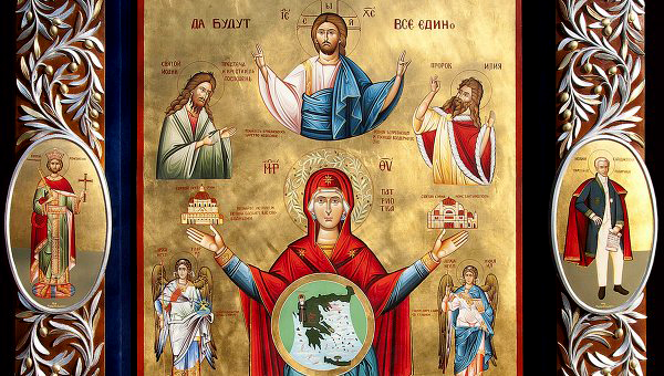 Одлука да се направи руска верзија иконе Богородице Јединства, достојна величине православног народа Русије, донета је 2006. године, рекао је светогорски архимандрит старац Георгиј Алеврас Кавсокаливит.