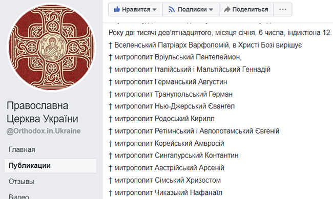 * Објављивање превода томоса на украјински разоткрило постојање опозиције Вартоломејевој игри са украјинским расколницима у самом врху Цариградске патријаршије