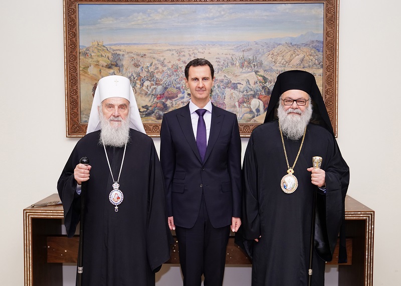 Председник Сирије г. Башар ал Асад примио је у Дамаску Његову Светост Патријарха српског г. Иринеја, са члановима посланства Српске Православне Цркве Митрополитом црногорско-приморским г. Амфилохијем и Епископом шумадијским г. Јованом, у присуству Његовог Блаженства Патријарха Антиохије и свег Истока г. Јована.