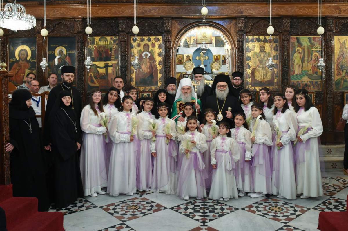 На стотине насмејаних и раздраганих мушкараца, жена и деце узвикивали су радосне поклике. У ваздуху се осетила радост због посете нашег Патријарха, на кога су падале као киша латице цвећа. И поред велике врућине (преко 40 степени) и велике гужве, сви су побожно и богобојажљиво прилазили и целивали свету десницу патријарху Иринеју. Убрзо затим један од мушкараца отпевао је кратку песму похвале и добродошлице Патријарху српском...