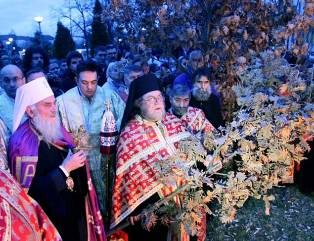 Патријарх српски Иринеј предводио је на Бадњи дан од 16 сати вечерње богослужење са освештањем и паљењем бадњака у малој Светосавској цркви на Врачару.