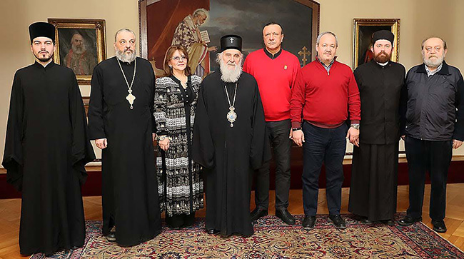 ЊЕГОВА Светост Патријарх српски г. Иринеј примио је у Патријаршији српској у Београду делегацију из Руске Федерације коју је предводио академик Николај Мухин, главни мозаичар на храму Светог Саве на Врачару.