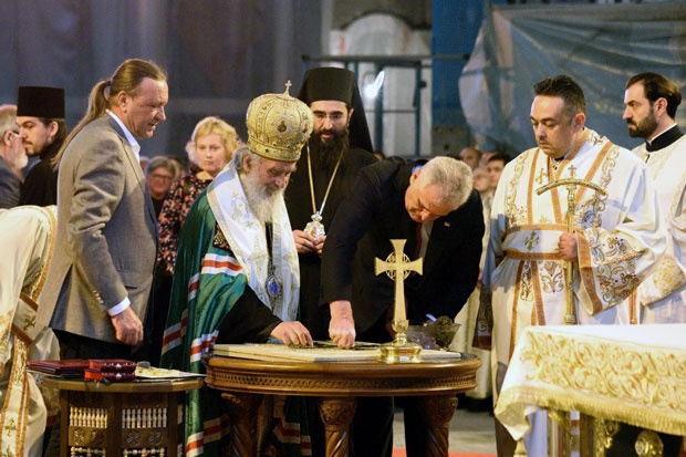 Николић и патријарх Иринеј симболично поставили прве каменчиће мозаика у куполи Храма Светог Саве
