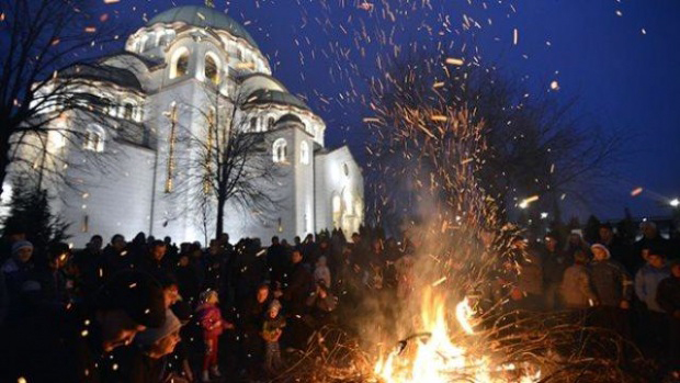 Патријарх предводио освећење и паљење Бадњака испред Храма Светог Саве