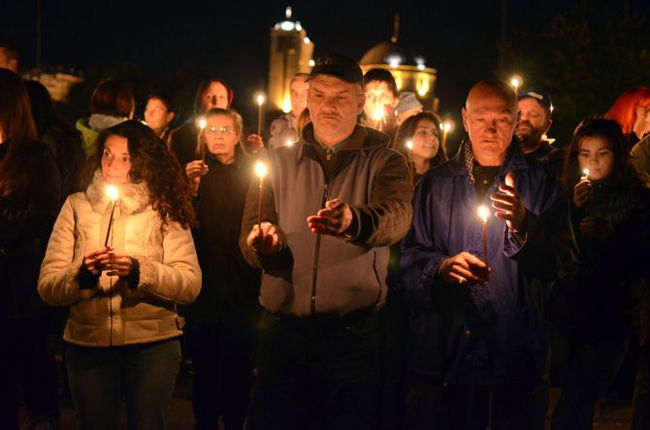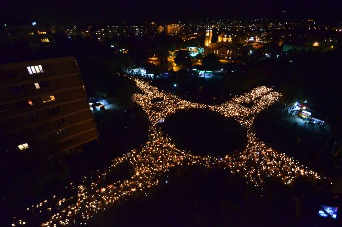 • Пет хиљада људи у Нишу је синоћ - на углу Булевара Немањића и Сремске улице у близини храма Светог цара Константина и царице Јелене - формирало крст од упаљених свећа