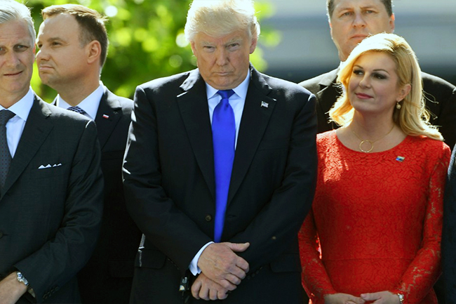 Хрватска председница Колинда Грабар-Китаровић снимљена је како настоји да се приближи америчком председнику.