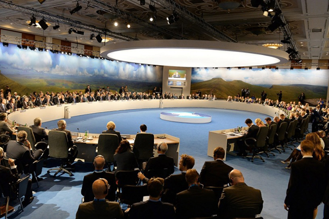 „Ми смо се дуго трудили да са Русијом изградимо односе који би респектовали њене забринутости у области безбедности и базирали се на међународним правилима. На жалост, Русија је наставила да Запад доживљава као противника. Русија је заљуљала систем правила, користећи економски и војни притисак да би испровоцирала конликте и нестабилност“.