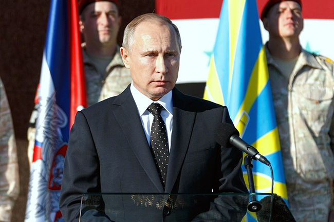Путин је оценио да су Оружане снаге РФ и сиријска регуларна армија за нешто више од две године уништиле „борбено најспособнију формацију међународних терориста“. Притом је нагласио, обраћајући се руским официрима и војницима у Хмејмиму: