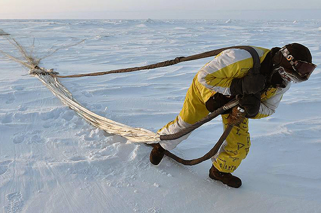 У авиону температура достиже минус 60. Међутим, на леду на који су се спустили падобранци - било је мало топлије. Сва њихова опрема, а то је око 50kg, састоји се од оружја, најважнијих потрепштина и топле одеће.