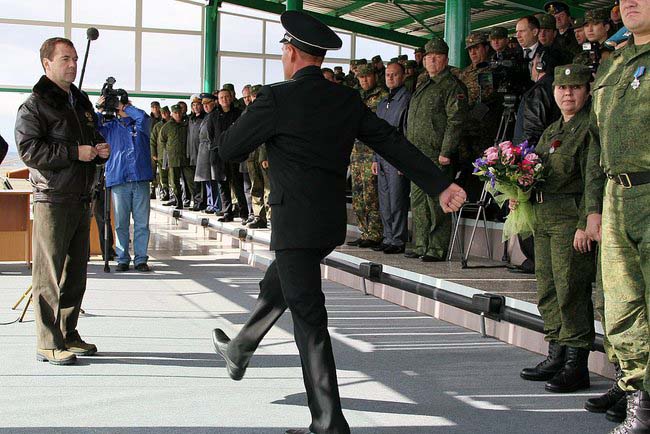 Медведев је нагласио да Русија сваке године мора повећавати проценат војника по уговору. А да у официрском саставу треба да остају само они који из године у годину радом и достигнућима потврђују право да буду руски официри.