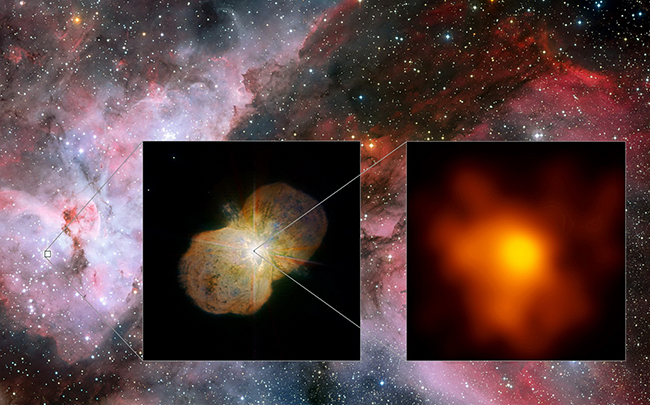 Те фотографије су омогућиле научницима да гледају необичан регион у централном делу система између велике и мале звезде Ете Прамца, у којем се сударају звездани ветрови две звезде, стварајући необично вртложење и структуре у материји Хомункулусове маглине.