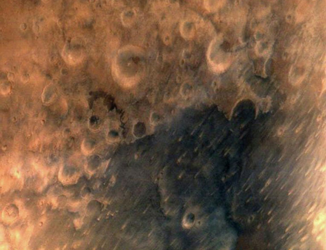 Фотографије Црвене планете направљене су са удаљености 7.300 киломтара. На њима се виде кратери у виду тамних удубљења на оранж површини.