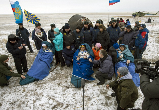 Јутрос се капсула са посадом приземљила у Казахстану, северно од града Аркалик. Космонауте ће прегледати лекари, након чега ће бити превезени специјалним авионом у Москву, у Звездани град.